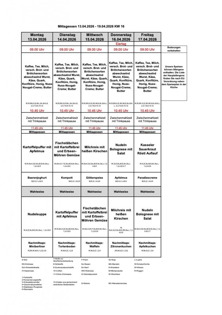 Speiseplan Tagespflege am Jungfernkopf in Kassel